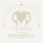 Gemini May 21st - June 20th. Spontaneous, playful, and adorably erratic, Gemini is driven by its insatiable curiosity. Appropriately symbolized by the celestial twins, this air sign was interested in so many pursuits that it had to double itself.