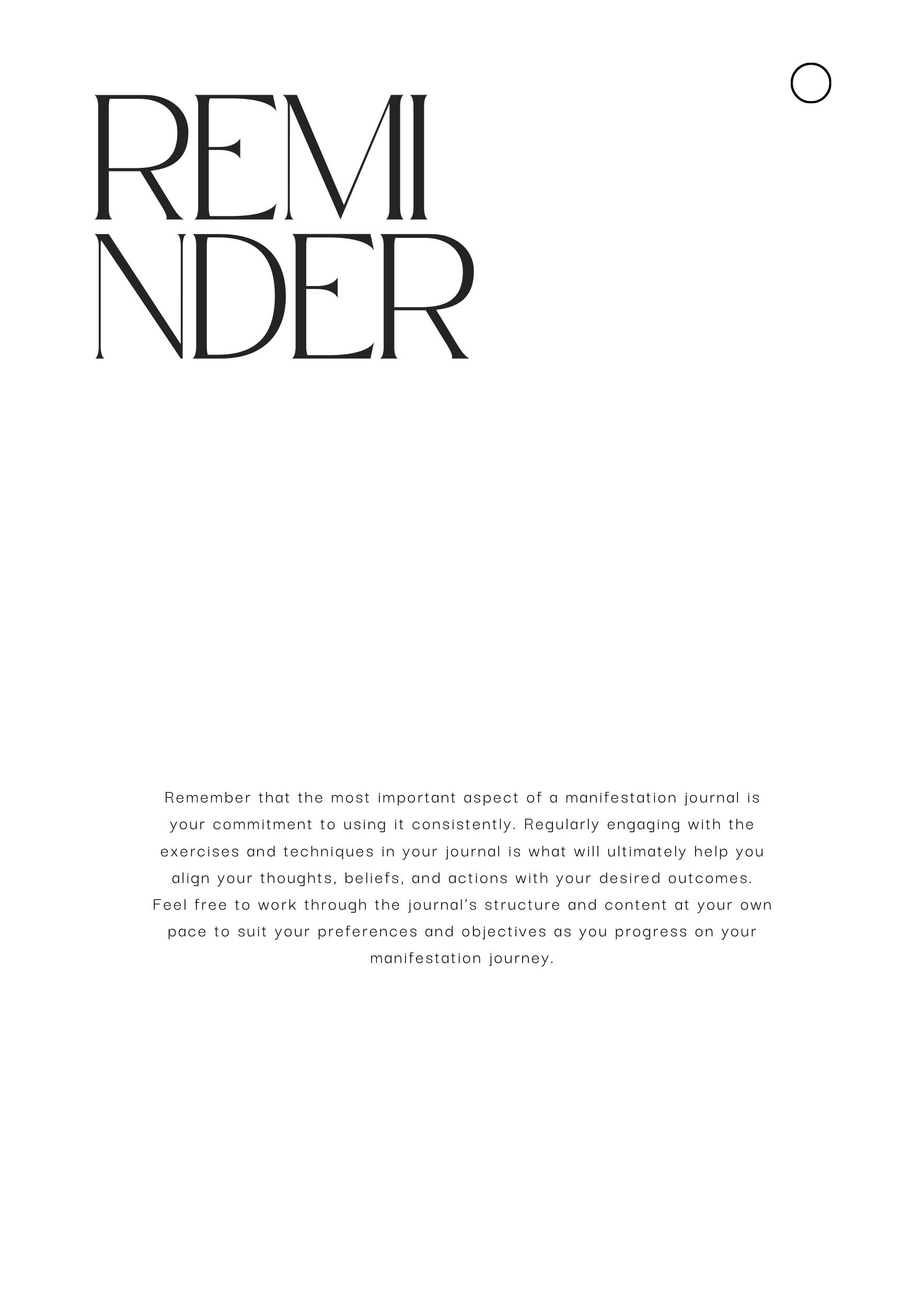 The Manifestation Journal is a 100 page workbook designed to help you manifest your ultimate life goals. Using a combination of reflection, goal-setting exercises, and guided meditation, this workbook will help you gain clarity of vision and tap into the power of manifestation. With this workbook, you can create an action plan, track progress and measure success in manifesting your goals. This work book is available as a physical product only.
